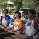 Jackson Hole News&Guide Alex Kelly, 8, in orange, listens as Ian McGregor talks about knife safety Wednesday, July 5, during the Slow Food Kid's Cooking Camp at the Jackson Hole People's Market. Slow Food in the Tetons developed the program with the goal of empowering young ... |